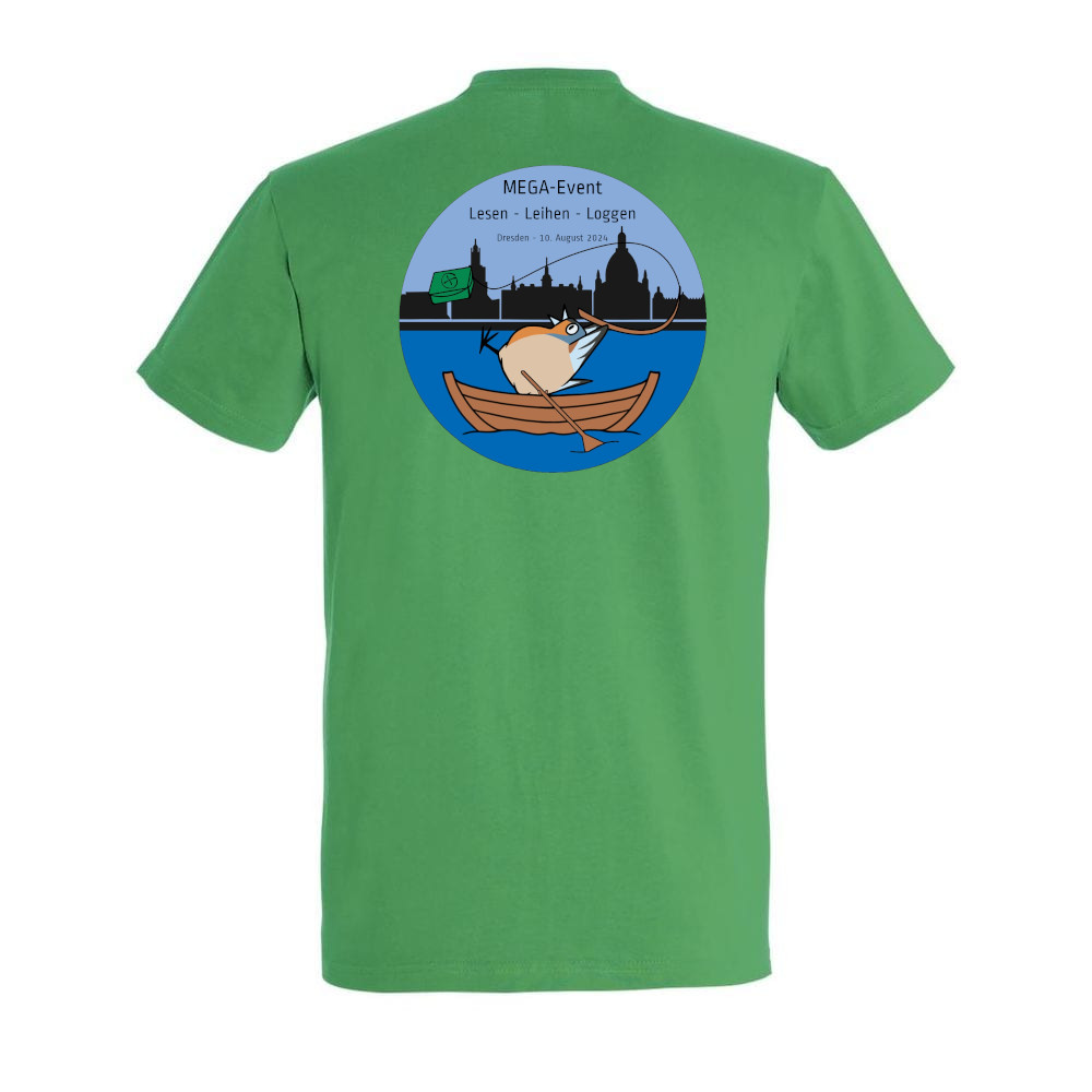 Das Event-Shirt zum Mega „Lesen – Leihen – Loggen“ in Grün. Lockerer, gerader Schnitt. Bitte Größentabelle beachten. Die Shirts fallen eher klein aus, im Zweifel die größere Größe wählen!